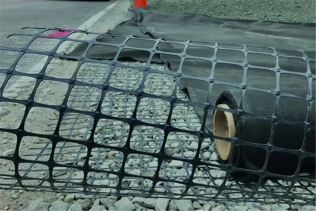 Geogrid jenis biaxial ini digunakan untuk perkuatan jenis tanah yang sangat lunak seperti lahan gambut, rawa, dan daerah berlumpur. Berfungsi mengunci agregat sehingga timbunan tanah diatasnya menjadi lebih kaku dan distribusi beban menjadi lebih merata.