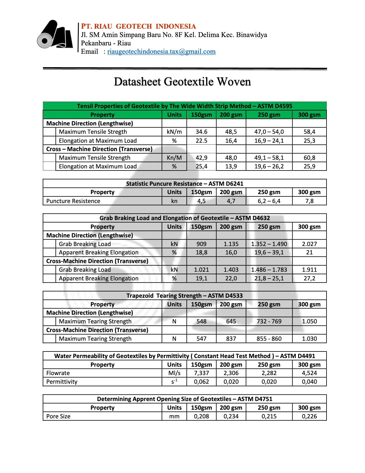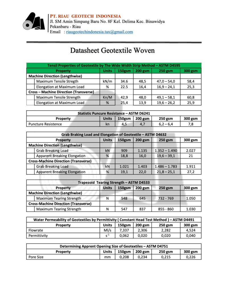 Geotextile Woven (anyaman) dapat dibagi menjadi beberapa kategori berdasarkan metode manufaktur, yang pertama dikembangkan dari serat sintetis. Geotextile Woven seperti karung beras tapi bukan yang terbuat dari bahan goni tetapi berwarna hitam dari bahan sintetik. Geotextile Woven memiliki fungsi sebagai bahan stabilisasi tanah dasar