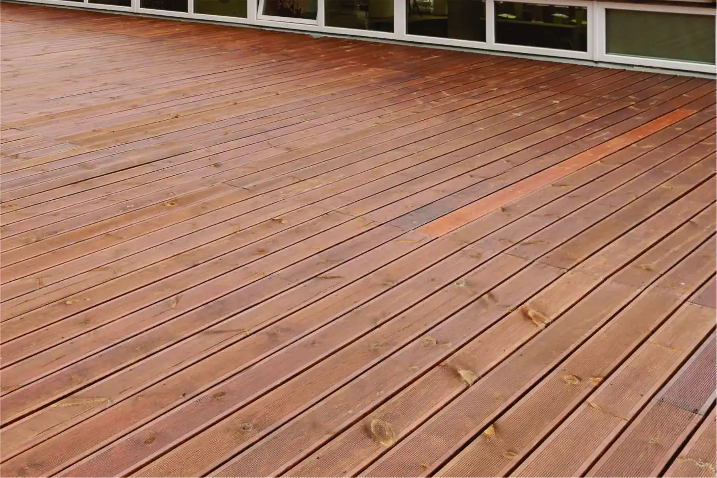 Wood Plastic Composite (Kayu Komposit Sintetis) adalah decking komposit terbaik untuk finishing lantai pada area publik maupun komersial. Terbuat dari kombinasi dari 60% serbuk kayu jati, 30% Recycle HDPE dan 10% campuran dari zat additive (pengikat) yang diproses secara khusus dengan Anti-UV agar tampilan dan warna tetap selalu terjaga dari sinar matahari langsung.